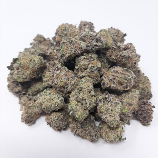Orange Zkittles is a rare evenly balanced hybrid strain (50% indica/50% sativa) created through crossing the infamous Agent Orange X Zkittlez strains. Love a classic hybrid? In that case, Orange Zkittles is totally for you. This bud packs a full-bodied high that hits mind and body with the same unforgiving potency thanks to its super high 23-26% average THC level. The high starts with a rush of cerebral effects that fill your mind with a sense of happy energy and powerful creativity. As your mind lifts higher and higher, your energy will begin to fade away, leaving you still lifted yet pretty hazy and unfocused. A relaxing body high comes next, dropping you into a light state of couch-lock that won’t cause any sedation in the slightest. Rather, you’ll be immovable and kicked back while your mind soars higher and higher. Thanks to these effects and its high THC level, Orange Zkittles is often chosen to treat those suffering from chronic stress, depression, chronic fatigue, and migraines or headaches. This bud has a sweet and sour citrus herbal flavor with a rich fruity overtone. The aroma follows the same profile, with hints of sharp spices as the nugs are burned. Orange Zkittles buds have heart-shaped olive green nugs with thin orange hairs and a coating of sandy amber crystal trichomes.